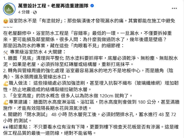 浴室防水不是「有塗就好」